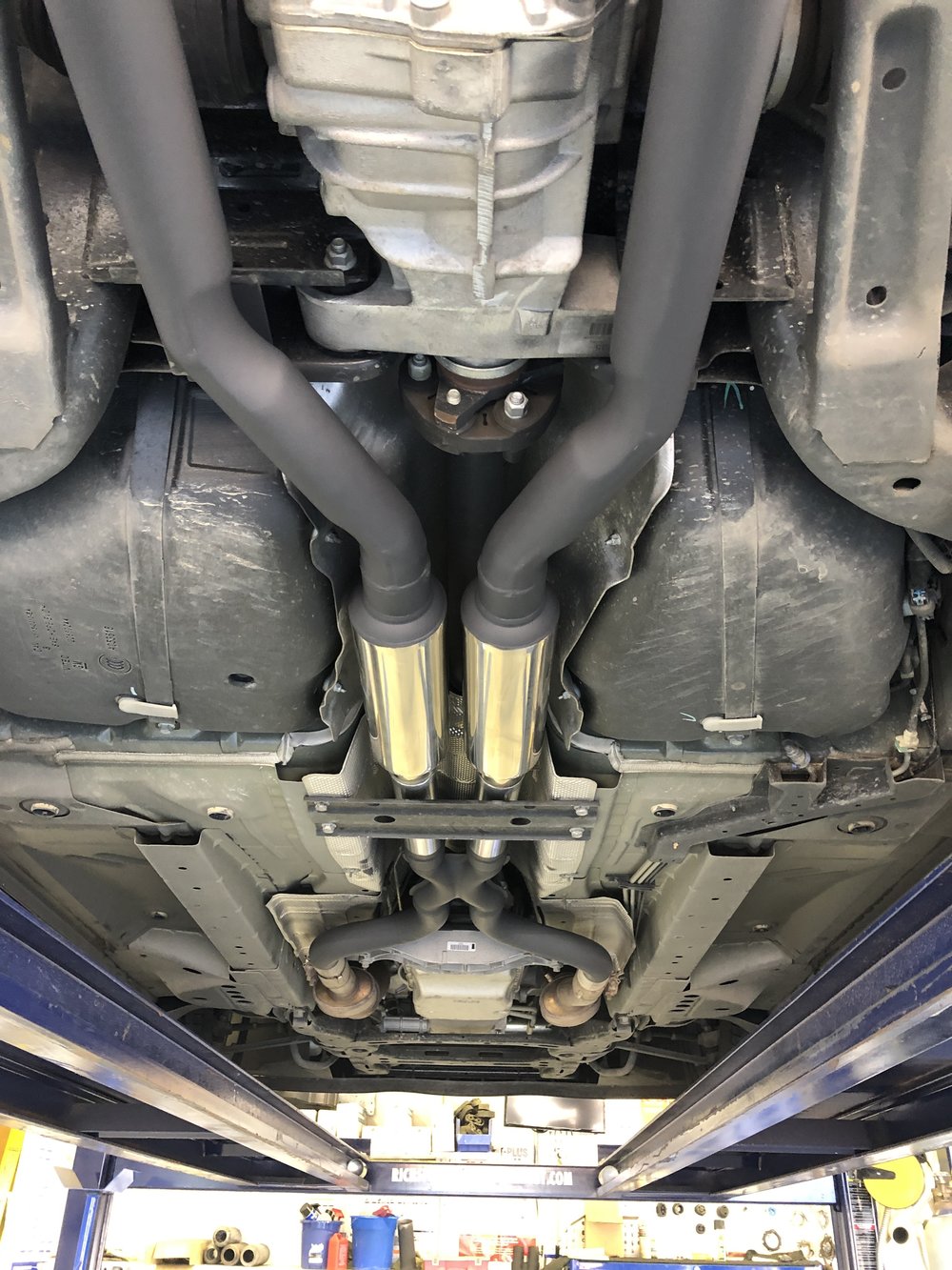 Street Demon Performance Exhaust Everyone should have them!! This true dual exhaust offers 10 + Hp and 1 mpg gain, and really gives this v6 a voice! Cutting off the resonator we started the exhaust with a hydro formed X pipe with our stainless street demon mufflers right behind. This allows for the streamlined rear pipe exit without seeing mufflers. Out back we installed a set of 3 inch staggered blue flame tips. As always finished in our very popular Platinum Series.